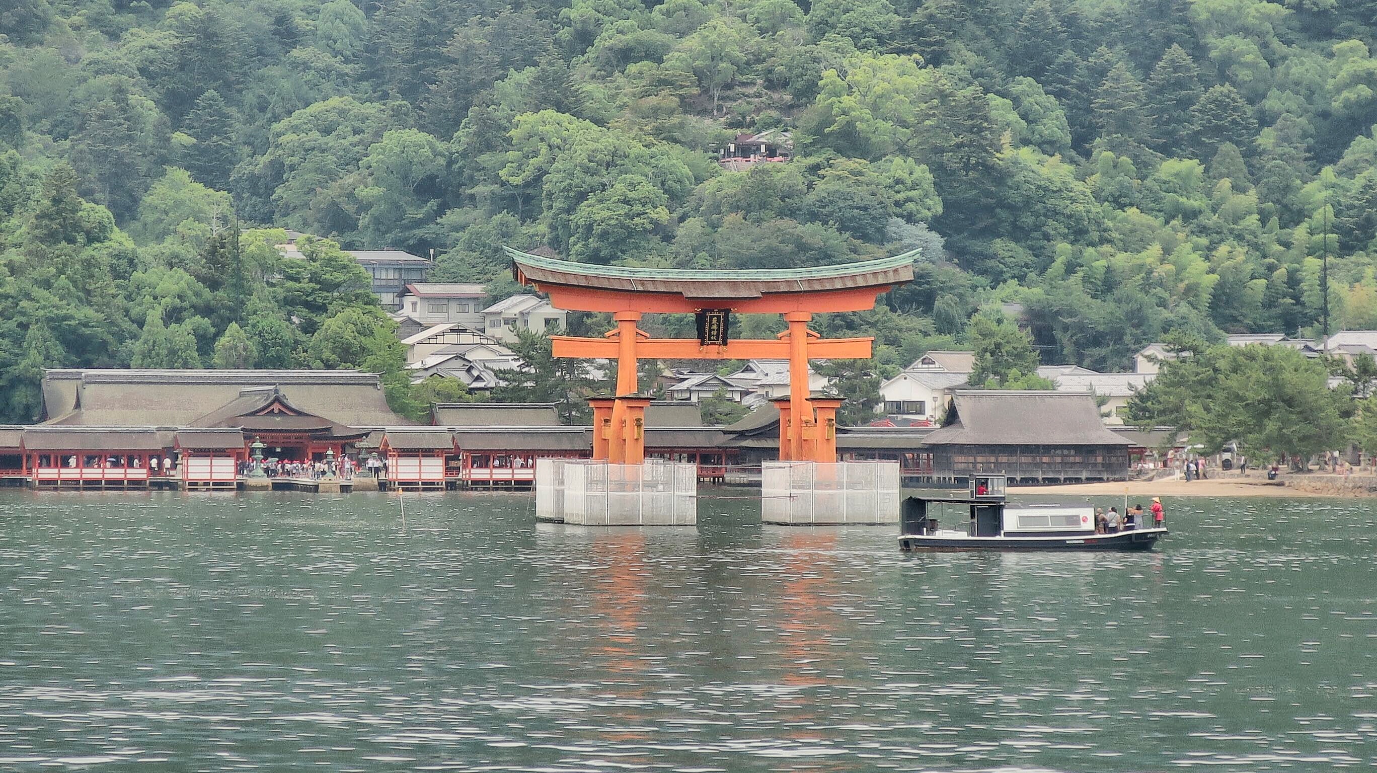 Pour y aller on prend un ferry qui circule sur la « mer intérieure » mer entre l’ile de Shikoku et Honshu. Le sanctuaire Shinto sur pilotis est tout aussi impressionnant que le torii en lui même. Les deux datent du 12ème siècle et ont été reconstruits en 1865. L’île est sacrée : on ne peut y naître ni mourir. À savoir comment appliquer ce précepte…