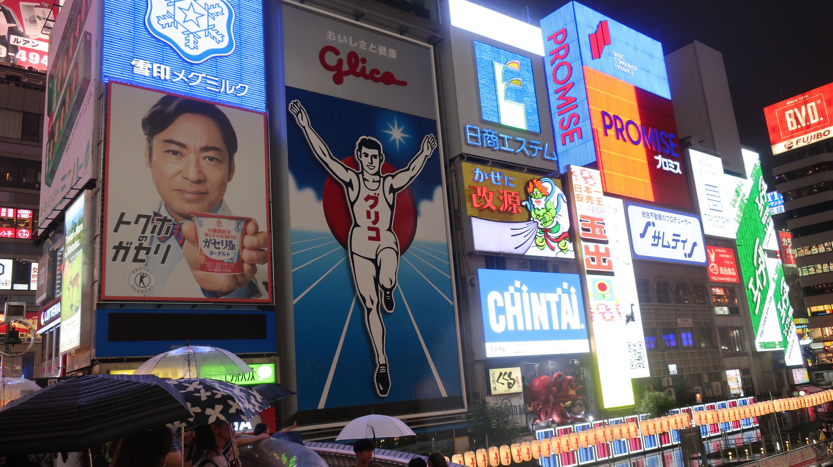 Kyoto, Kobe et Osaka forment la gigantesque mégalopole du Kansai, 19 millions d’habitants. Seulement 40 km séparent Kyoto d’Osaka. Mais c’est comme visiter une abbaye cistercienne puis Time square dans la journée tant les villes sont différentes. À Osaka pas de jardin zen ni de grand temple, mais des buildings spectaculaires, des enseignes lumineuses, des quartiers entiers de jeux vidéos et machines à gagner nounours et figurines. Un proverbe dit que la tête du Japon est à Tokyo, le cœur à Kyoto et le ventre à Osaka…