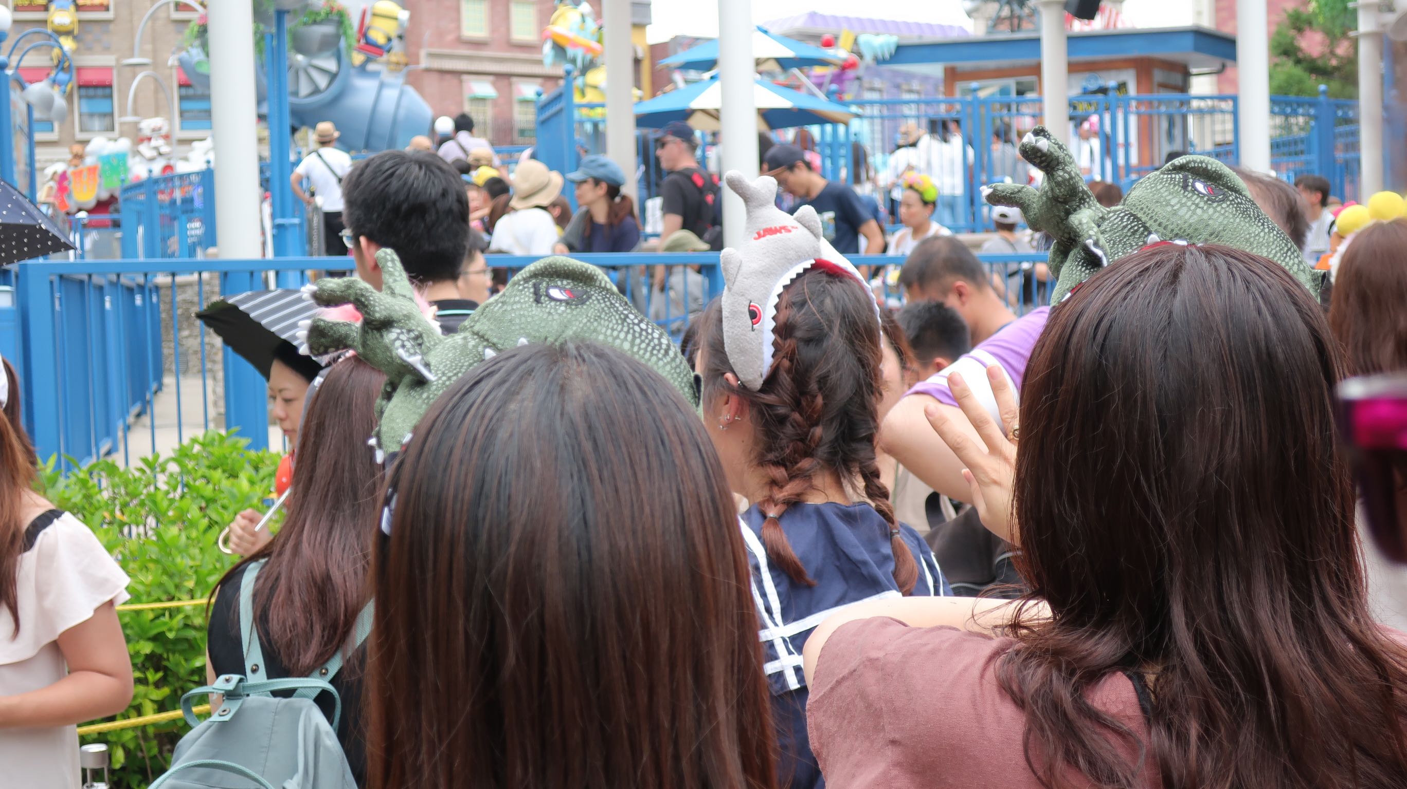 Même si on est pas féru d’attractions USJ mérite le détour pour deux raisons. La première : les décors de cinéma sont somptueux. Les reconstitutions de Poudlard (enfin si on peut parler de reconstitution), des quais de San Francisco ou des usa des années 50 sont très réussies. La deuxième : on peut réaliser une enquête sociologique sur la jeunesse chinoise et japonaise (étonnamment, quasi aucun occidental dans ce parc). On découvre alors que filles et garçons achètent des serre-têtes « minions » ou dinosaure, que le téléphone est vissé à la main pour faire un selfie resserré toutes les secondes, qu’il est de bon ton pour un couple de s’habiller exactement pareil.